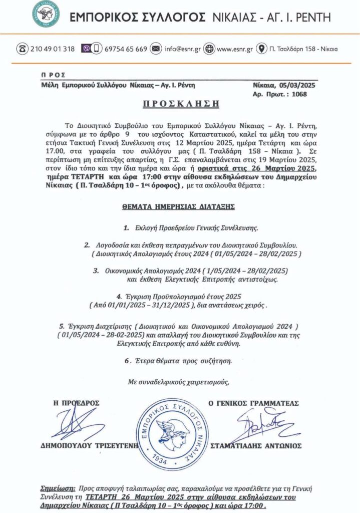 Γενική συνέλευση στο δημαρχείο της Νίκαιας στις 26/3/25