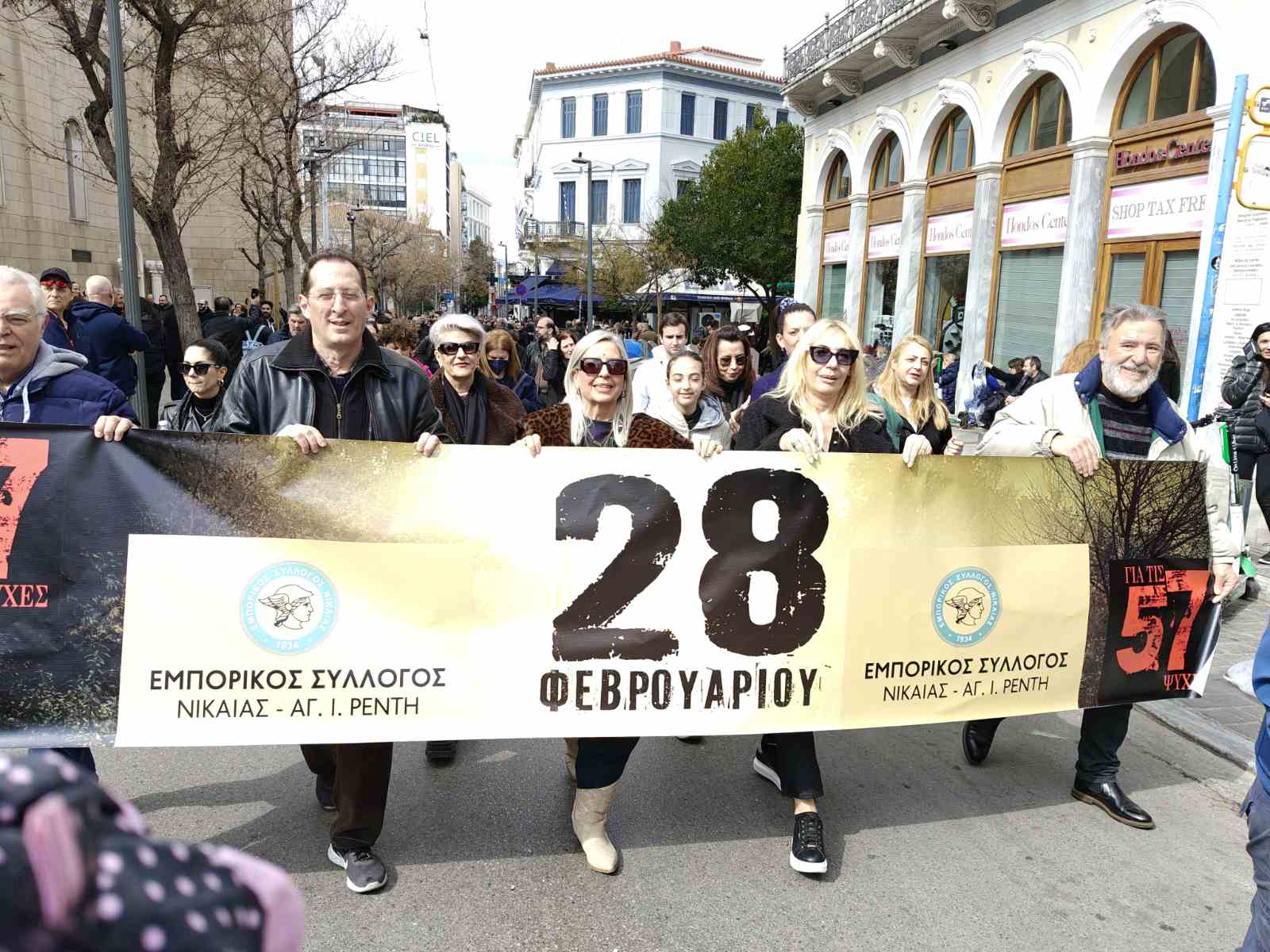 Στις 28 Φεβρουαρίου 2025, ο Εμπορικός Σύλλογος Νίκαιας – Αγ. Ι. Ρέντη έδωσε δυναμικό παρόν στο μεγάλο συλλαλητήριο στο Σύνταγμα, ενώνοντας τη φωνή του με όλους όσοι απαιτούν , απόδοση δικαιοσύνης.