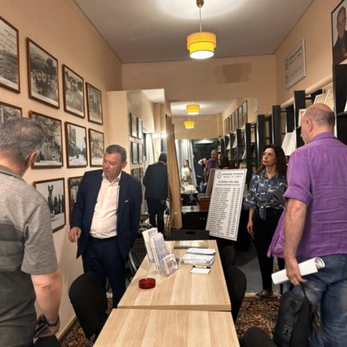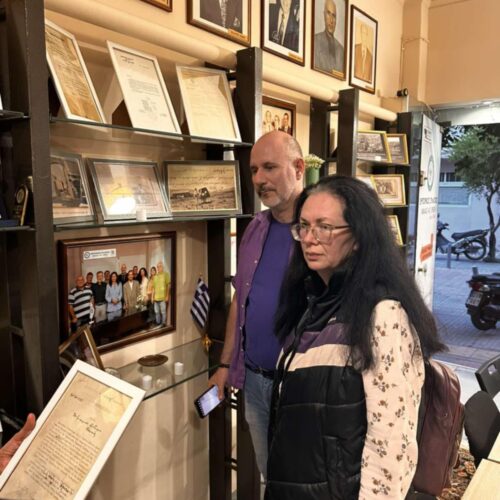 📚 Στο πλαίσιο της συνάντησης, τα μέλη του Δ.Σ. ξενάγησαν τον κ. Τερζή στην αίθουσα του Ιστορικού Αρχείου, όπου φυλάσσεται σπάνιο υλικό από τη μακρόχρονη πορεία του Συλλόγου, ο οποίος λειτουργεί από το 1934.